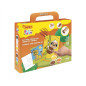 L'article se présente dans une mallette pratique avec 8 pots de sable de différentes couleurs, un poinçon et 3 feuilles avec des motifs de différents animaux terrestres.